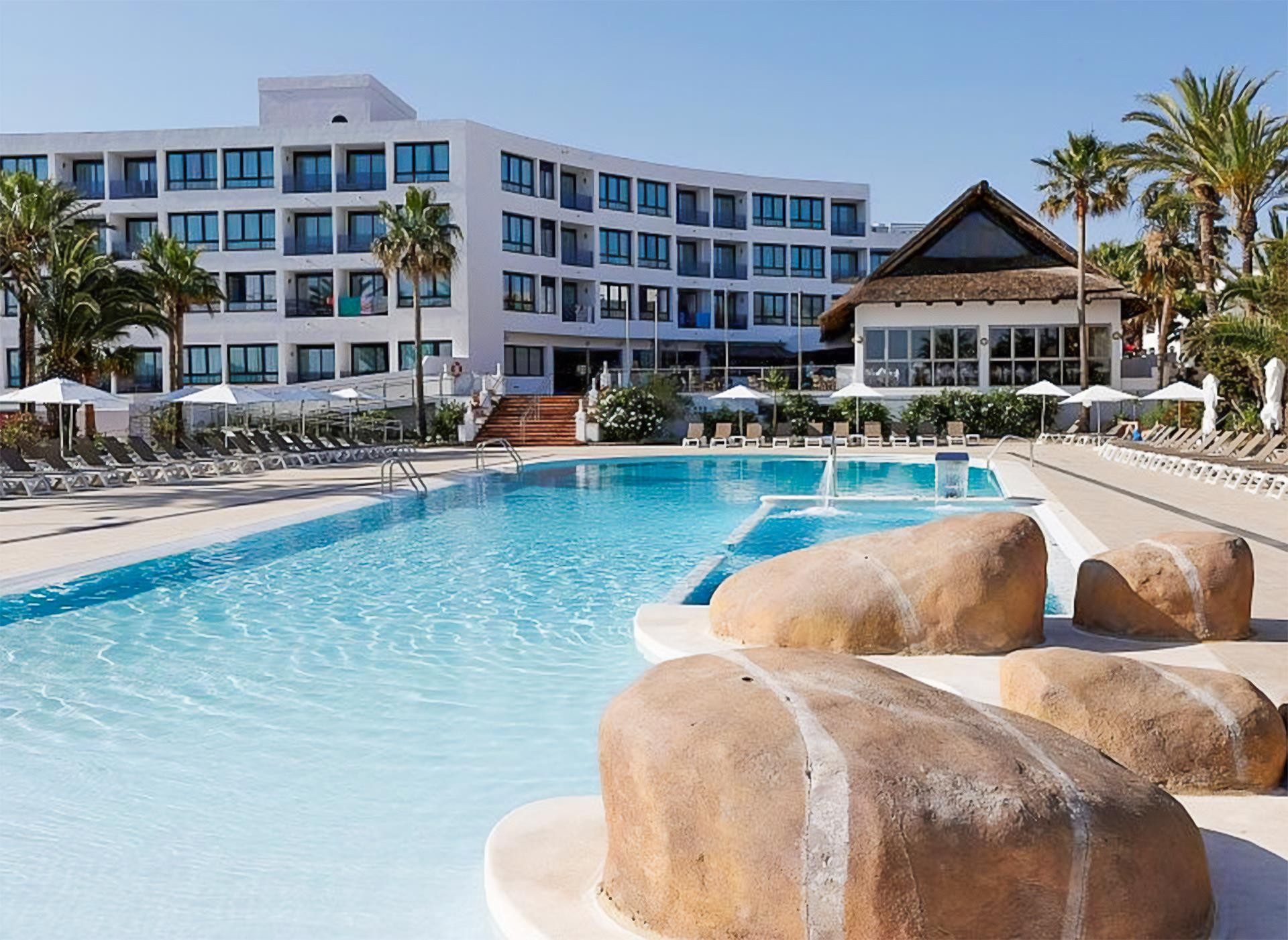 Přímo u moře v okrajové části zálivu San Antonio. V blízkosti nákupních a zábavních možností, stejně jako zastávky linkového autobusu. Centrum střediska San Antonio je vzdáleno cca 4 km. Letiště je vzdáleno 21 km od hotelu.