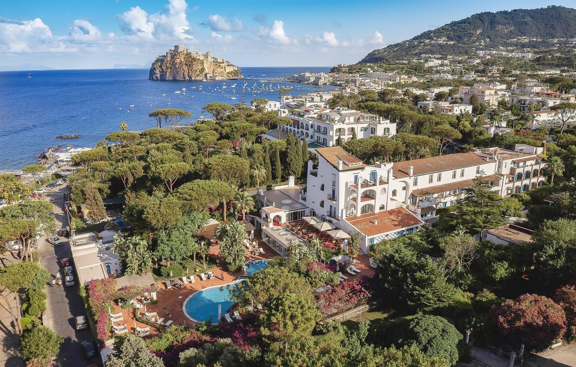 Hotel s naprosto výjimečnou polohou se nachází se přímo u malé písečné pláže, v klidné oblasti nerušené dopravou ani turistickými davy. Přesto v pěší dostupnosti živého turistického centra městečka Ischia Porto s kavárnami, restauracemi, obchody s italskou módou a v pěší dostupnosti slavného Aragonského hradu i vyhledávané dlouhé písečné pláže San Pietro, kde má hotel pro své klienty k dispozici vlastní úsek pláže s plážovým servisem. Ubytování je zajištěno v jedné ze tří hotelových budov, všechny pokoje mají boční výhled na moře. Hostům je k dispozici i pěkné lázeňské centrum s nabídkou procedur a zábalů, a bazén se sladkou vodou s pěkným výhledem na záliv Lido. Hotel s kvalitními službami je dobrou volbou pro klienty, kteří ocení výbornou polohu v blízkosti pláže i pěší dostupnost centra letoviska s obchody, restauracemi i bary.